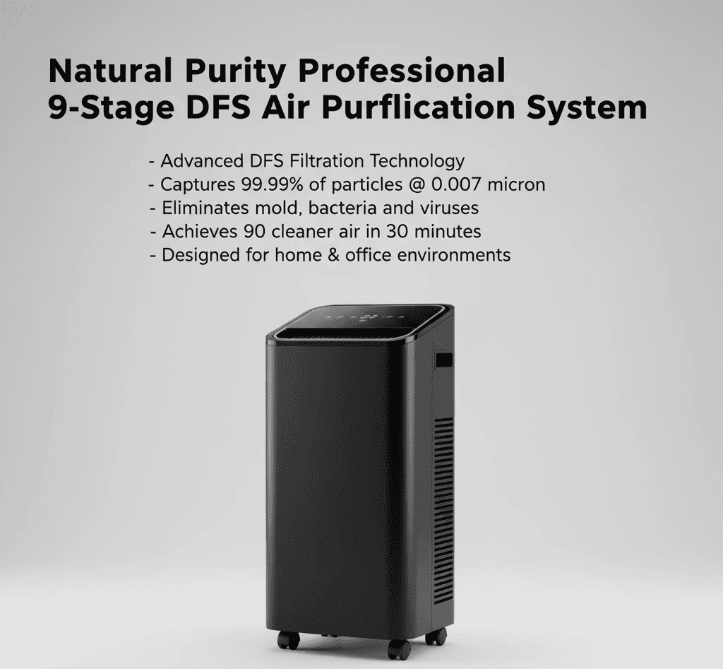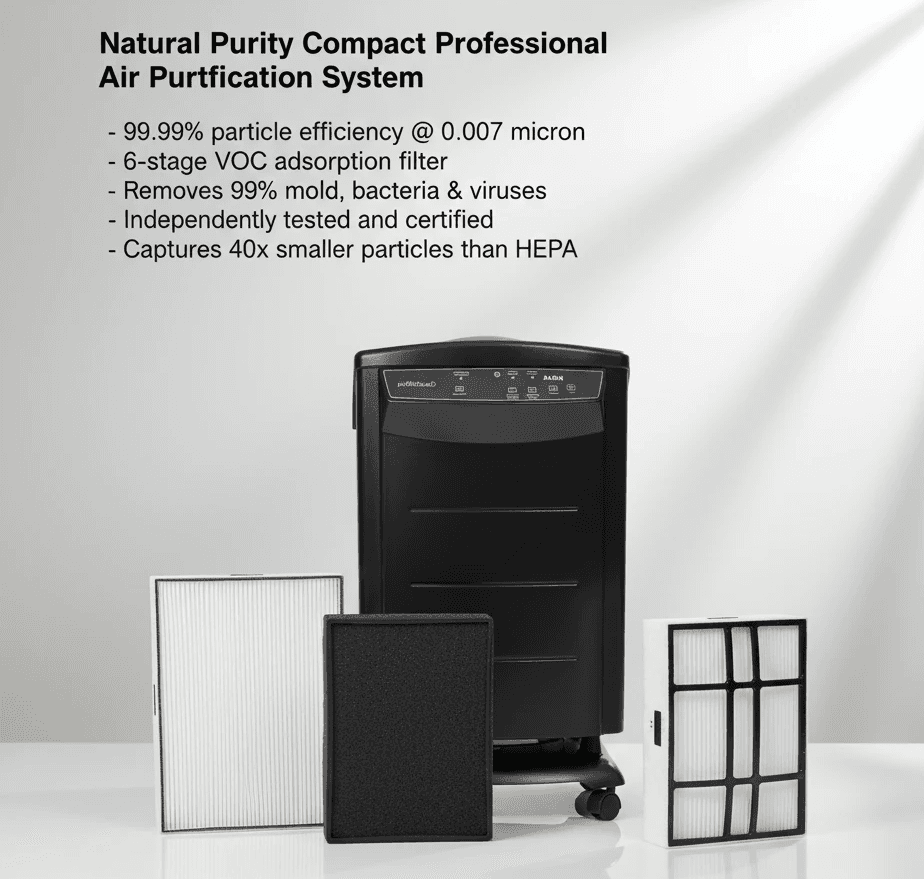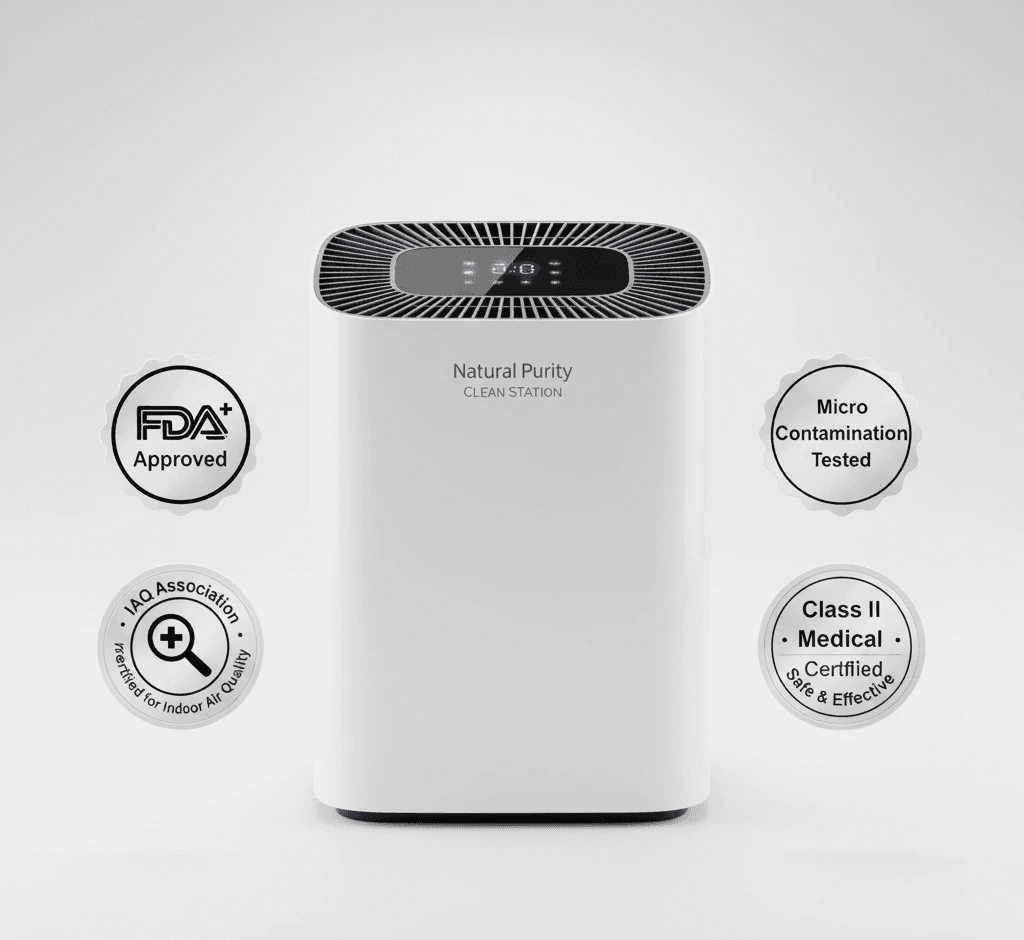 The Natural Purity Clean Station is a Class II medical-grade air purification system designed to protect your family from harmful indoor pollutants, allergens, and toxins.